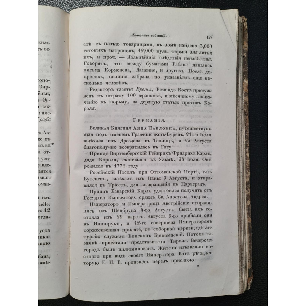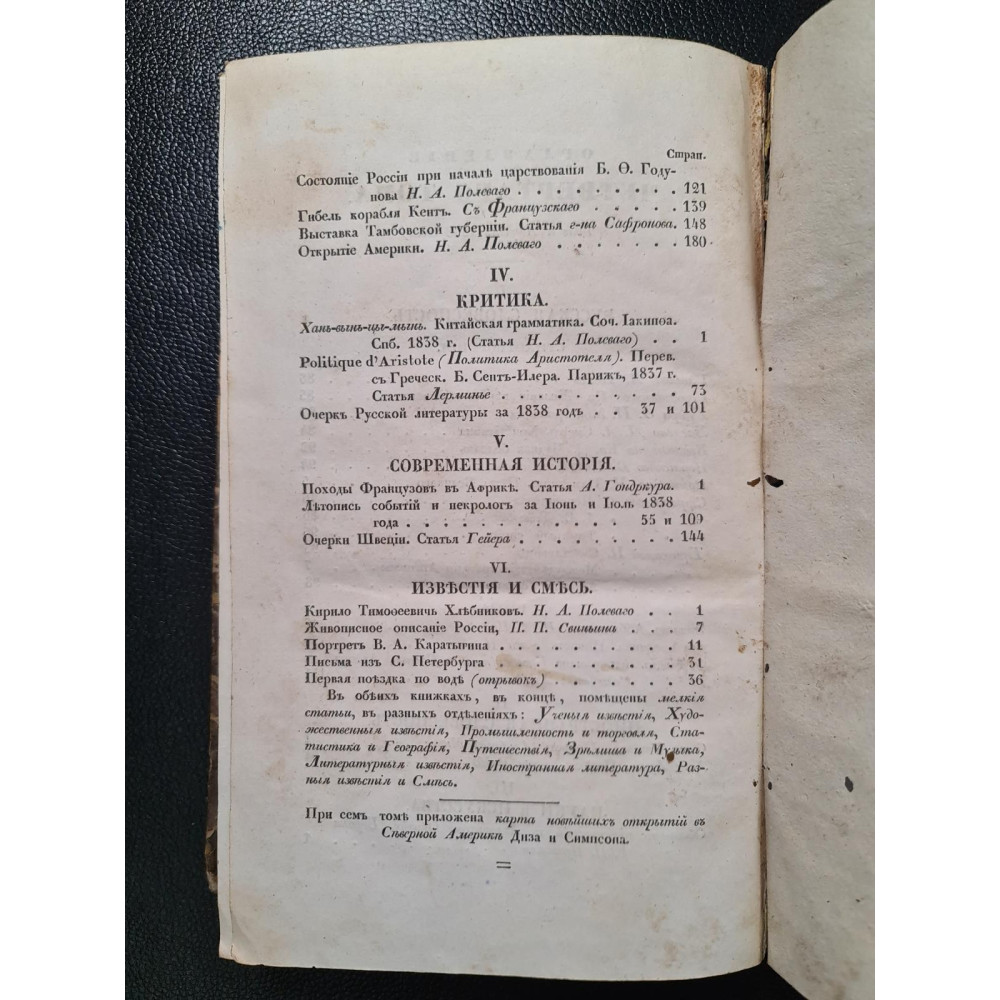 ???? Літопис подій 1838, нарис про Швецію, стаття про походи французів в Африці.