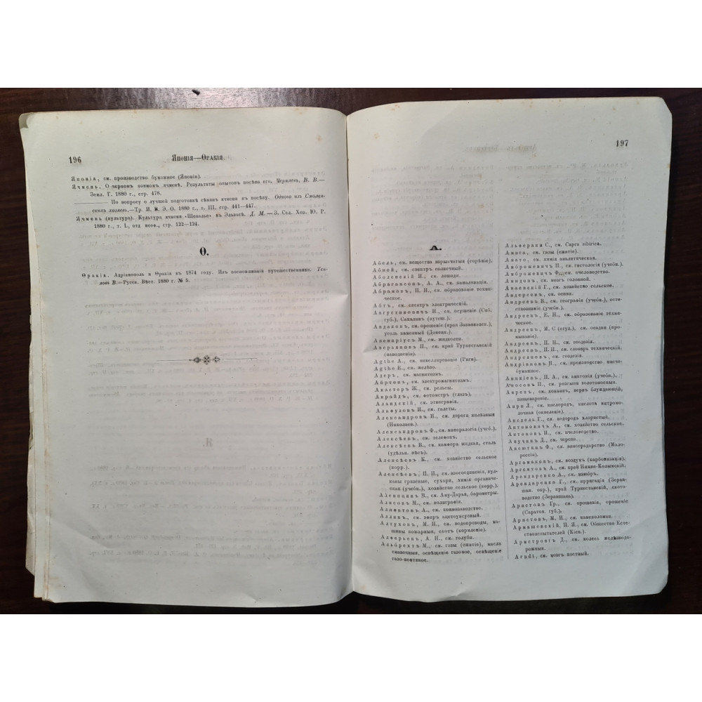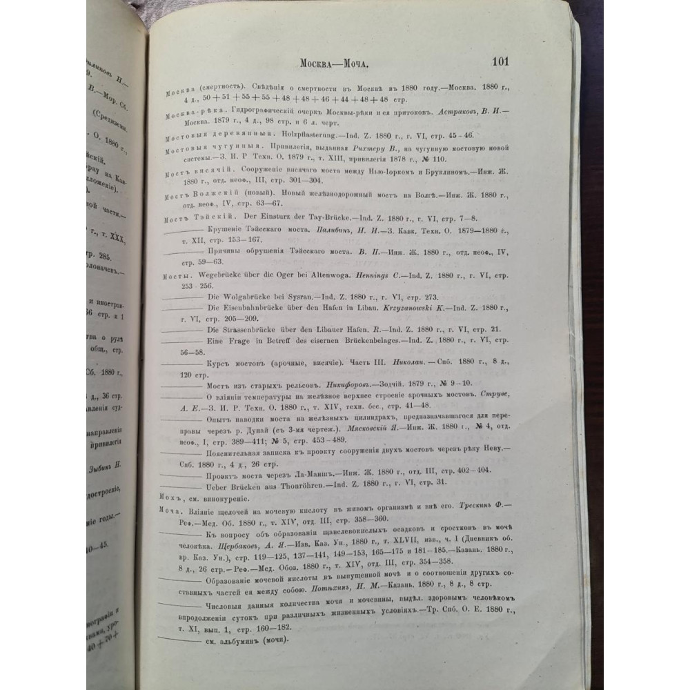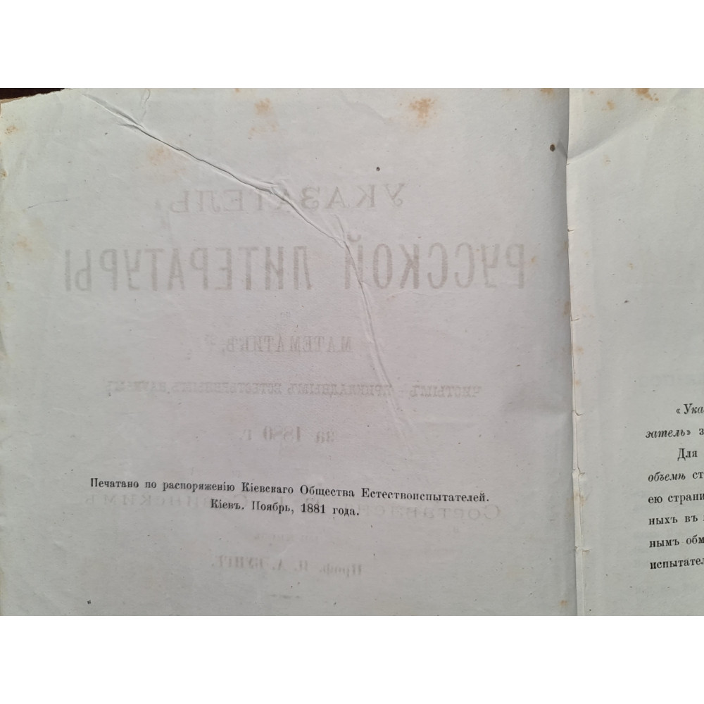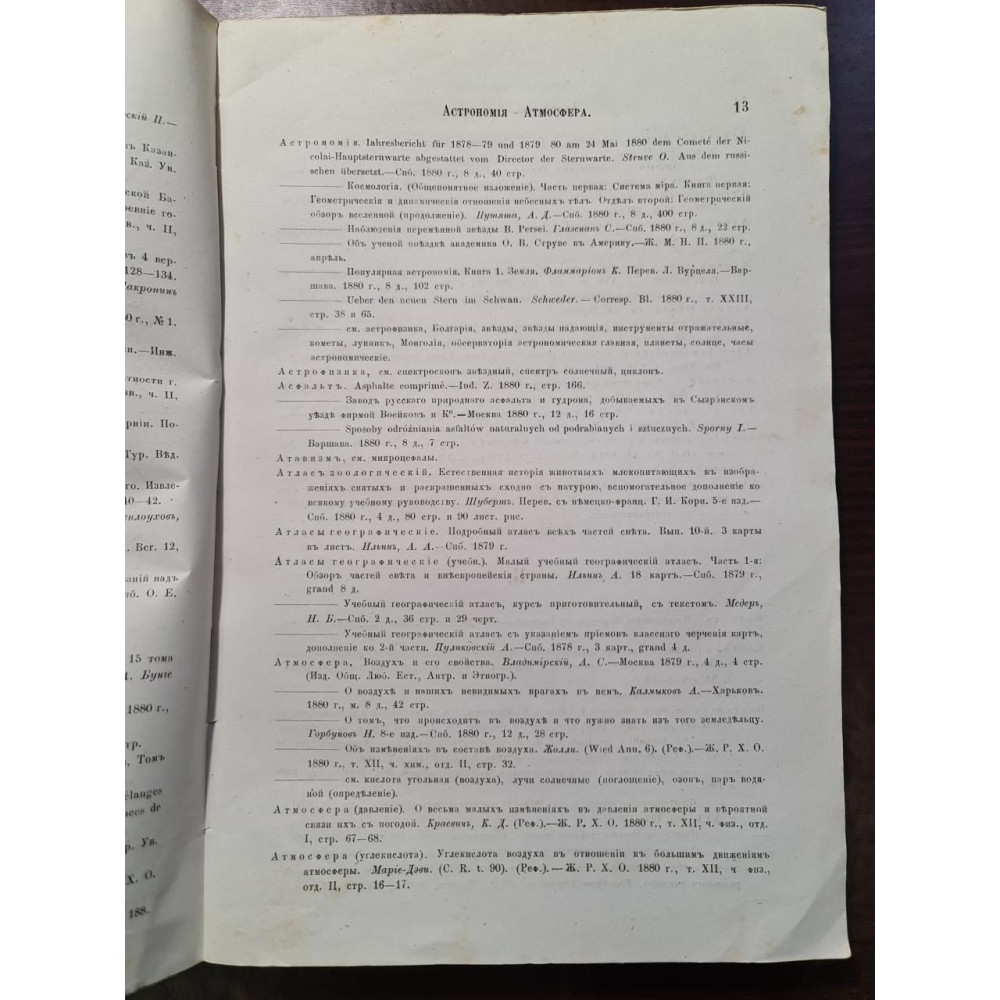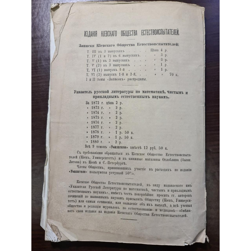 Рідкісне антикварне видання кінця XIX століття, що є покажчиком російської літератури з математики, а також чистим і прикладним природничим наукам за 1880 рік. Книга складена В. К. Совінським за редакцією професора Н. А. Бунге, відомого економіста та державного діяча Російської імперії.