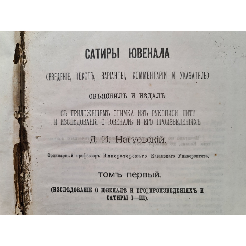 Пропонуємо до вашої уваги рідкісне видання 1888 року — «Сатири Ювеналу» у перекладі та з коментарями видатного філолога Дарія Ілліча Нагуєвського.