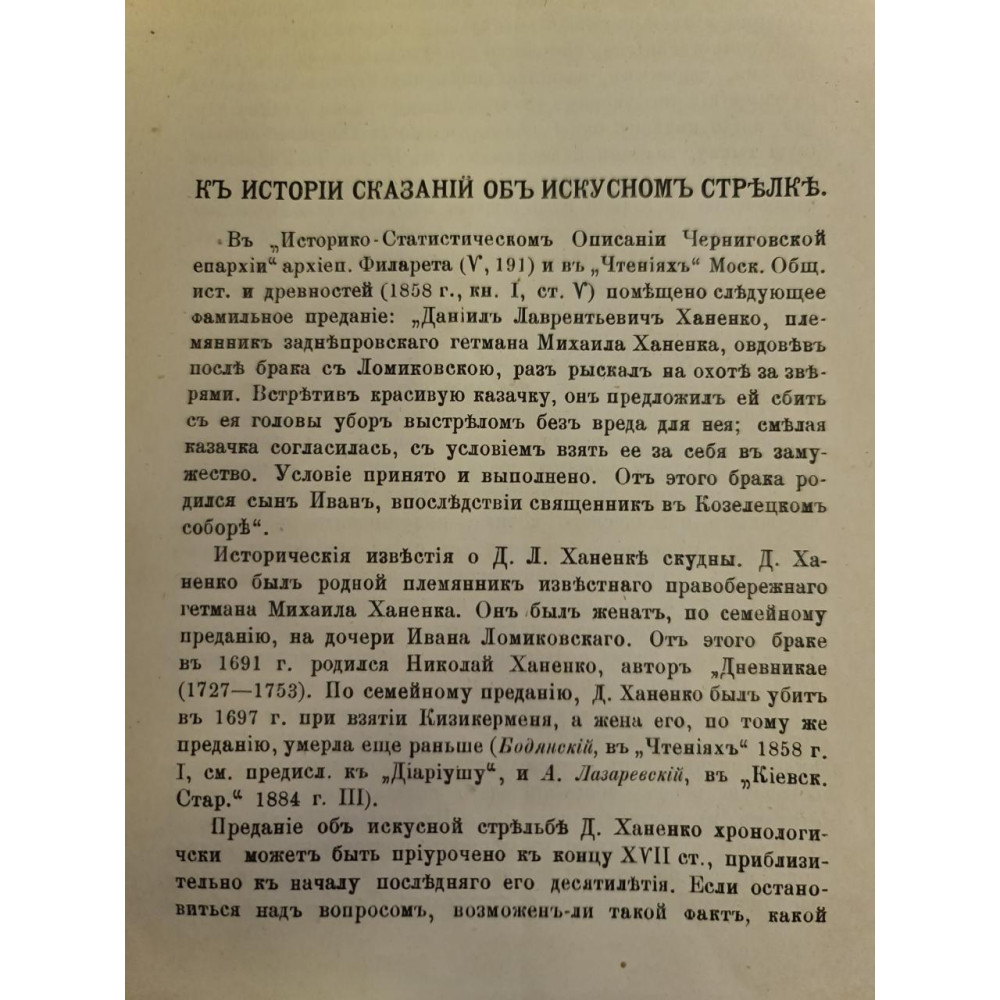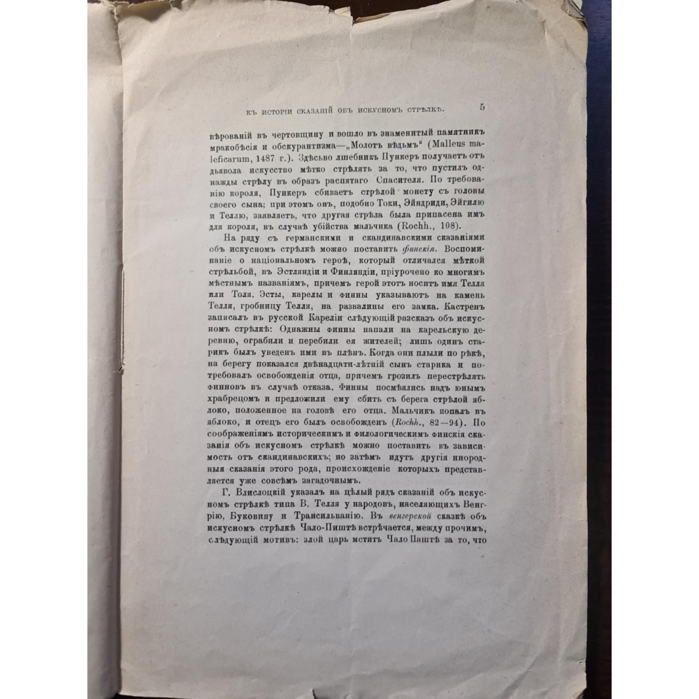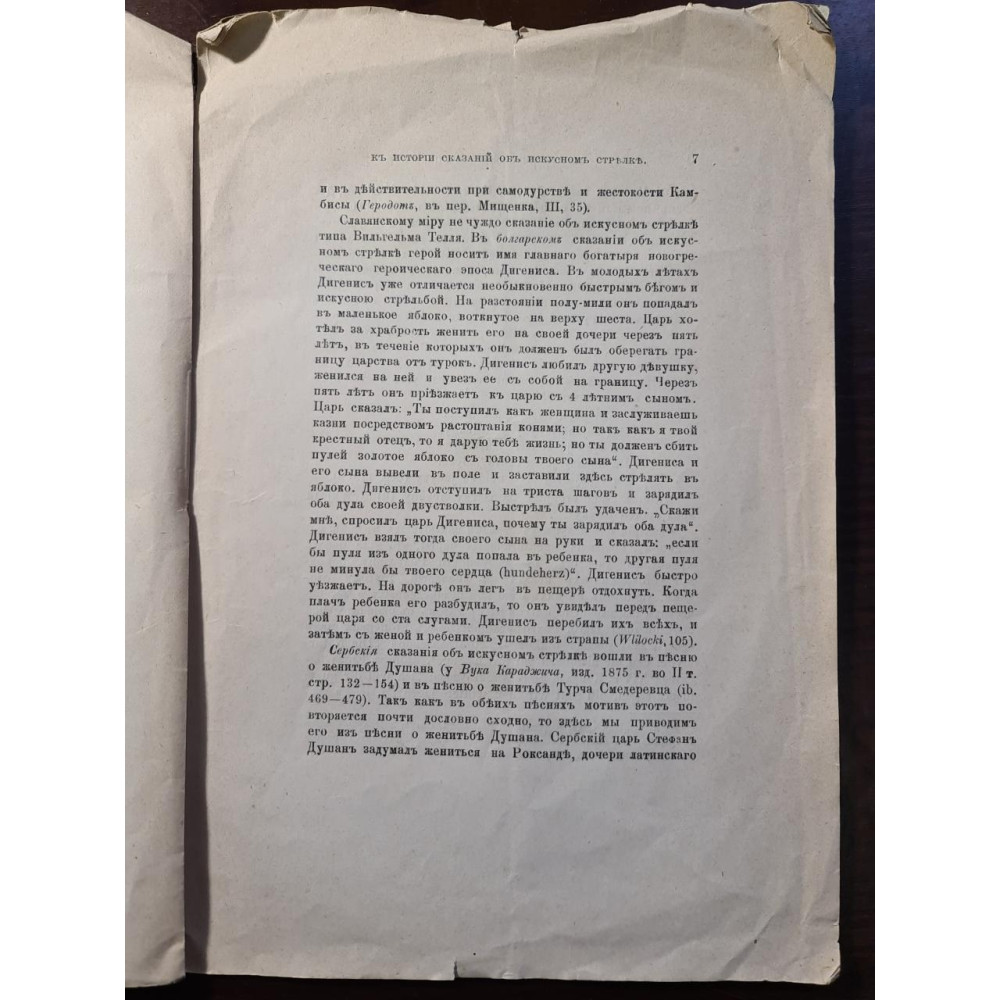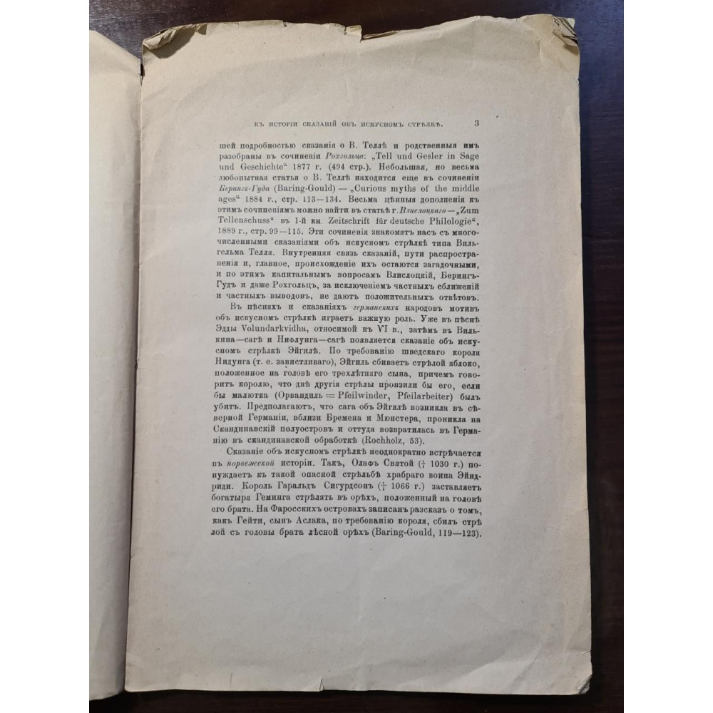 У цій роботі Сумцов розглядає різні варіанти оповідей про майстерні стрілки, поширені у фольклорі різних народів. Одним з найвідоміших є легенда про Вільгельма Телла, швейцарського національного героя, який, за переказами, збив стрілою яблуко з голови свого сина.
