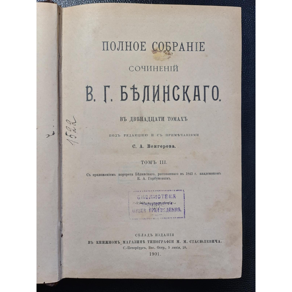 Книга «Повне зібрання творів В. Г. Бєлінського. Том III» було видано 1901 року у Санкт-Петербурзі.