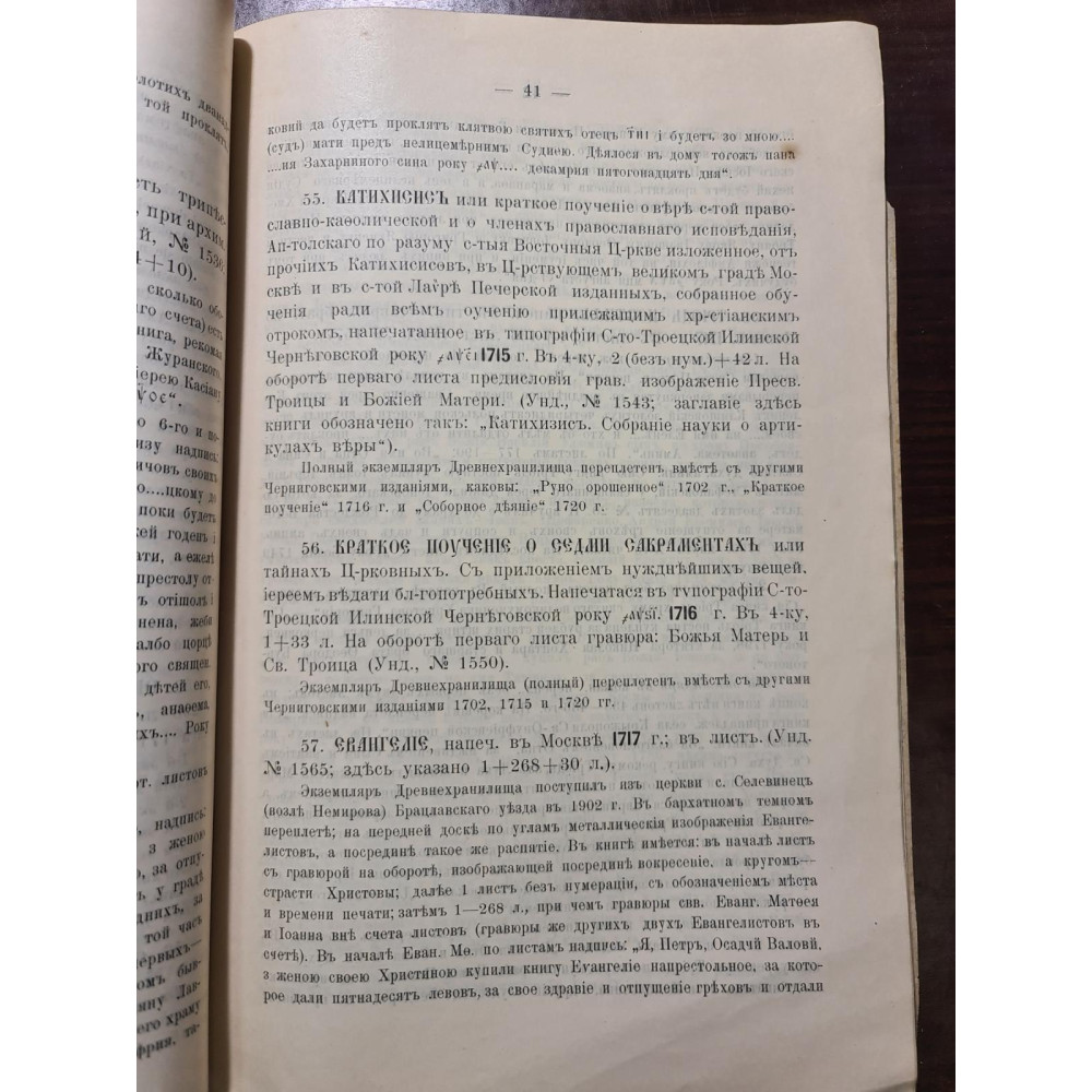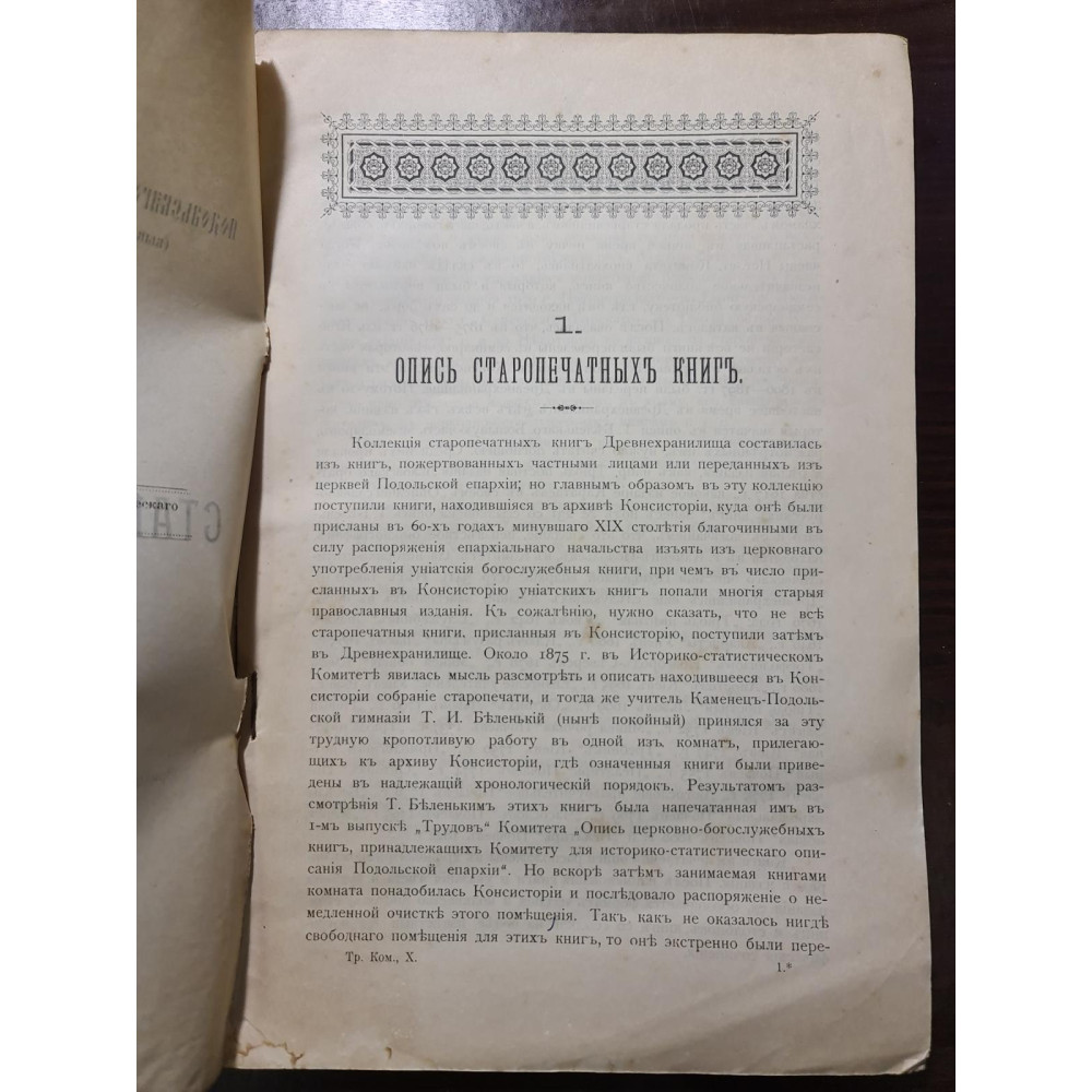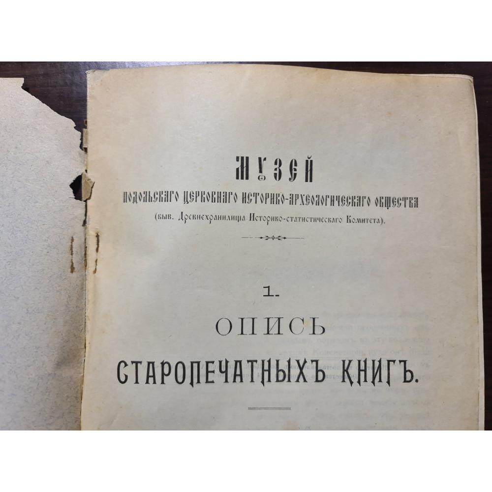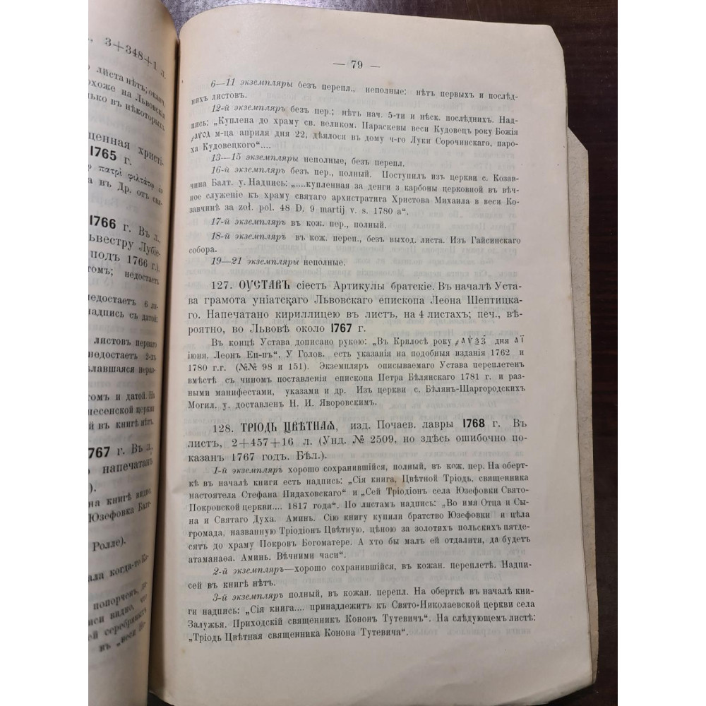 Рідкісне дореволюційне видання, що є каталогом стародруків, складеним протоієреєм Є. Сицинським.