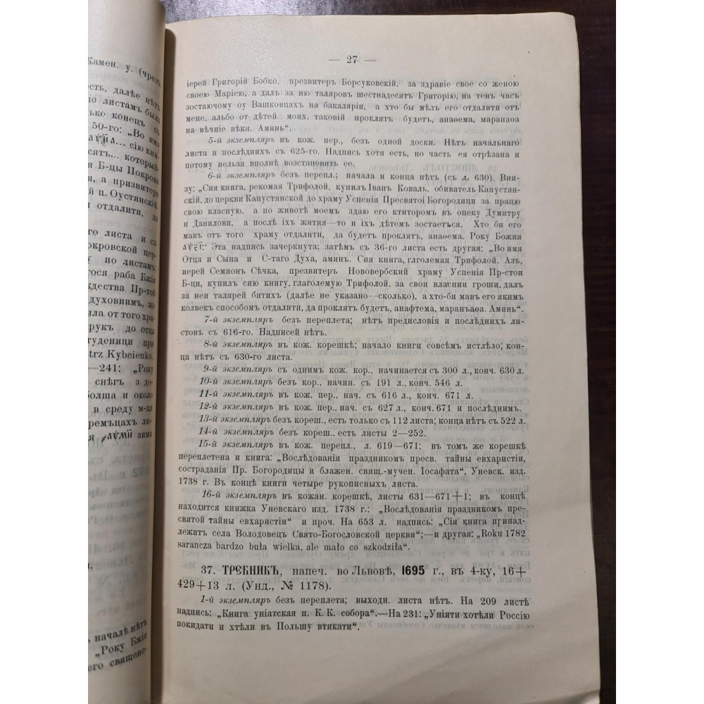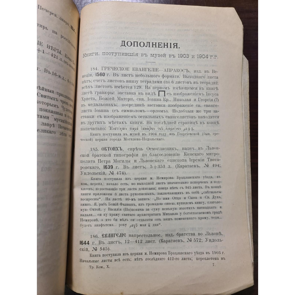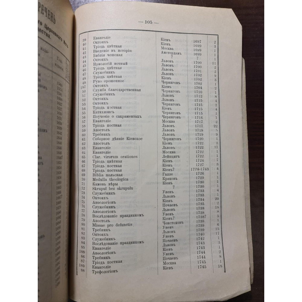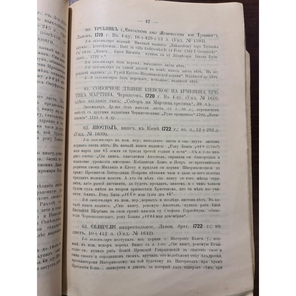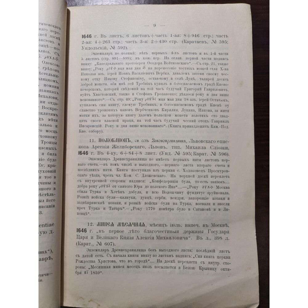 Рідкісне дореволюційне видання, що є каталогом стародруків, складеним протоієреєм Є. Сицинським.