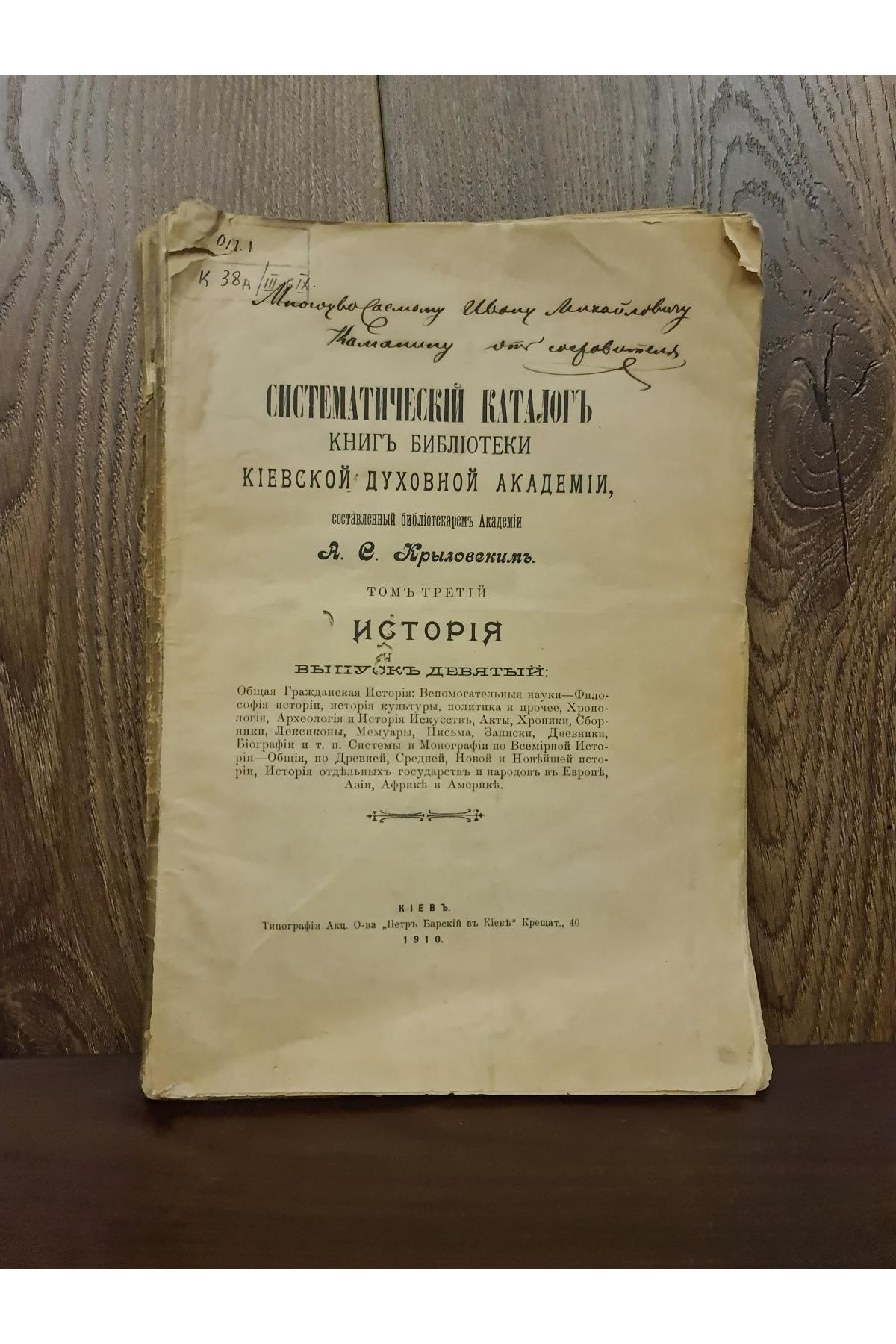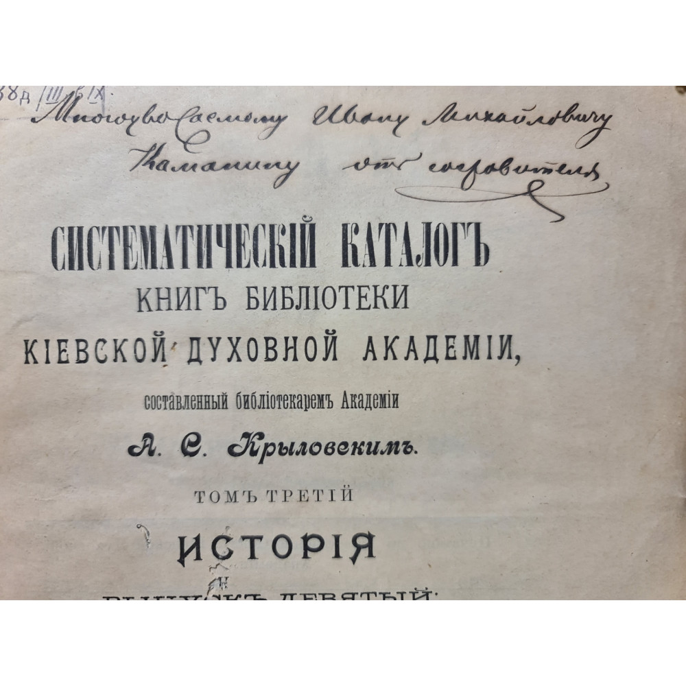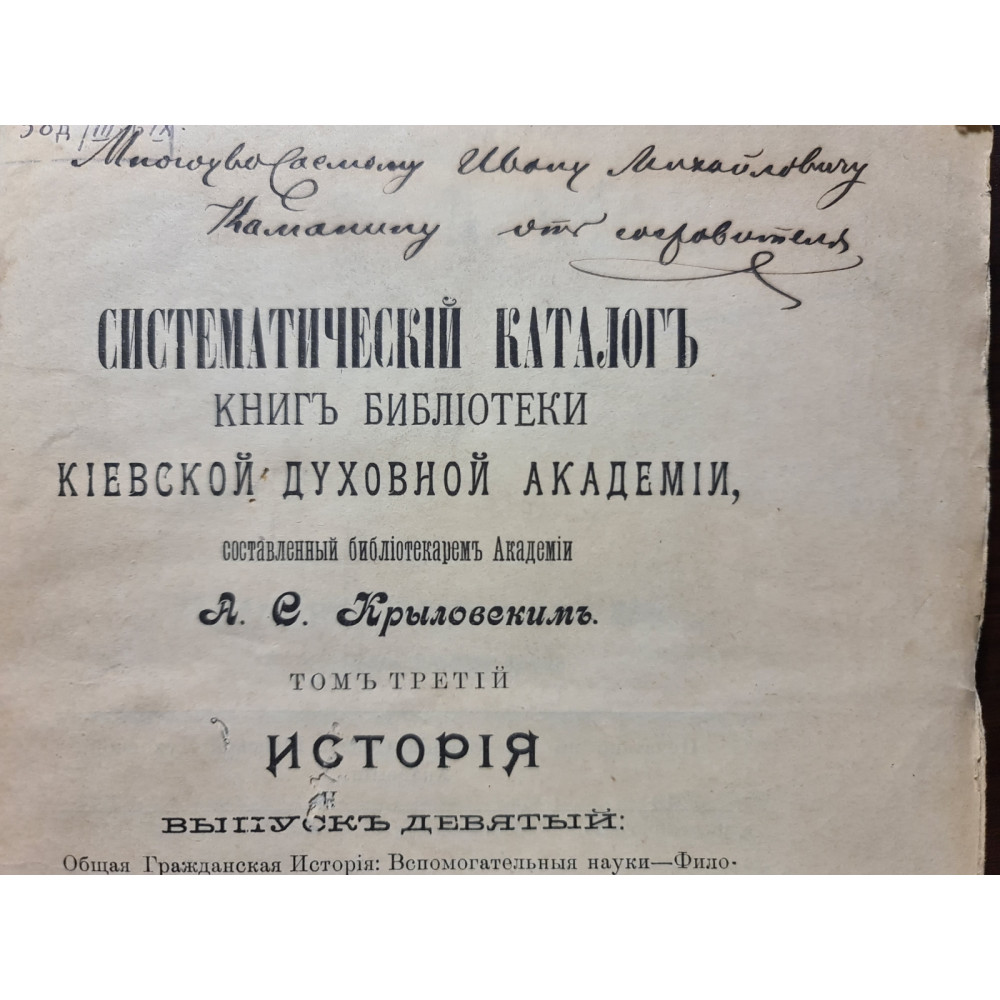 «Систематичний каталог книг бібліотеки Київської Духовної Академії» — фундаментальна праця,