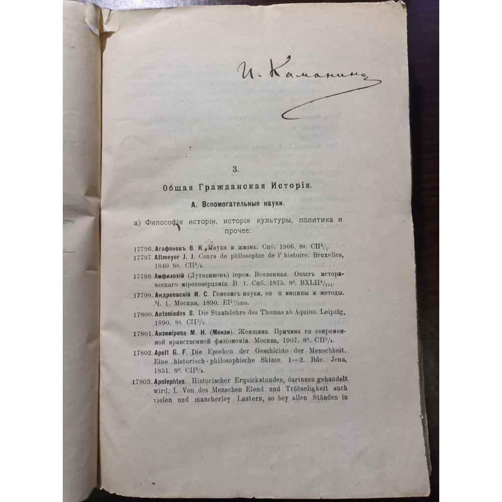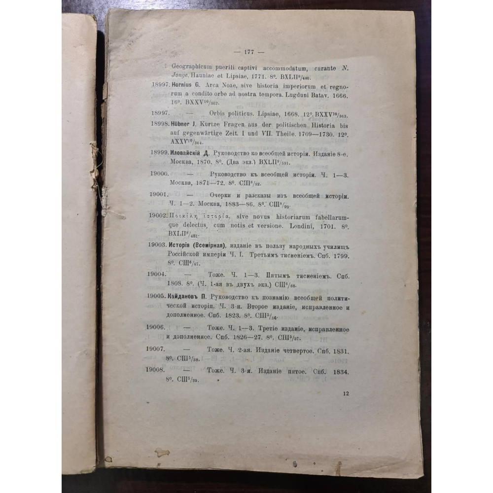 Він включає розділи загальної громадянської історії, філософії історії, хронології, археології,