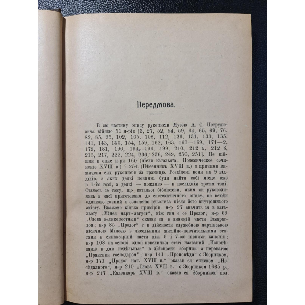 Основний зміст книги присвячено опису рукописів із колекції Антона Петрушевича,
