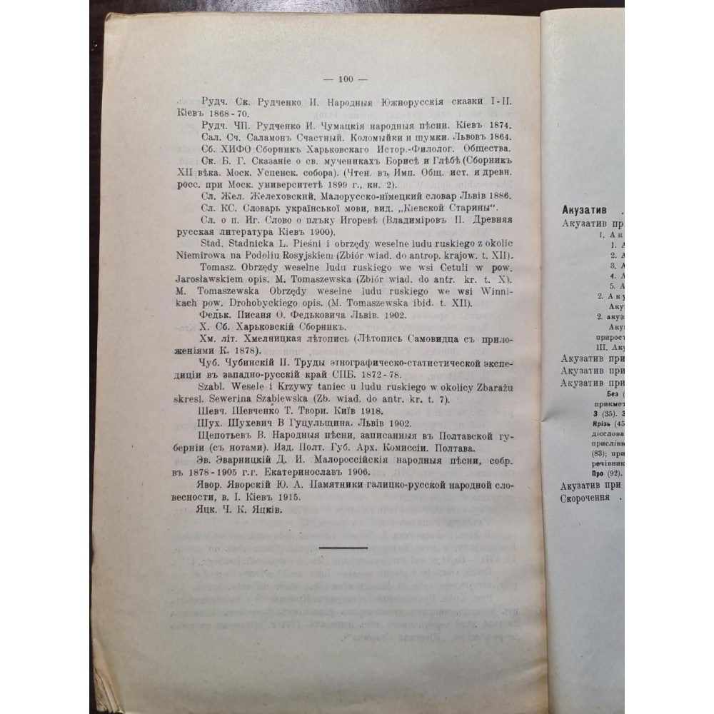 «Акузатив в українській мові» — наукова праця професора Євгена Тимченка, видана у 1928 році. Ця монографія завершує серію його досліджень, присвячених відмінкам в українській мові, і зосереджується на аналізі функцій знахідного відмінка. У передмові автор зазначає, що ця робота є частиною задуманої ним складні імені в українській мові, яка мала охоплювати всі відмінки, числові та родові категорії, а також загальний огляд граматичних категорій імені у порівнянні з іншими слов'янськими мовами.