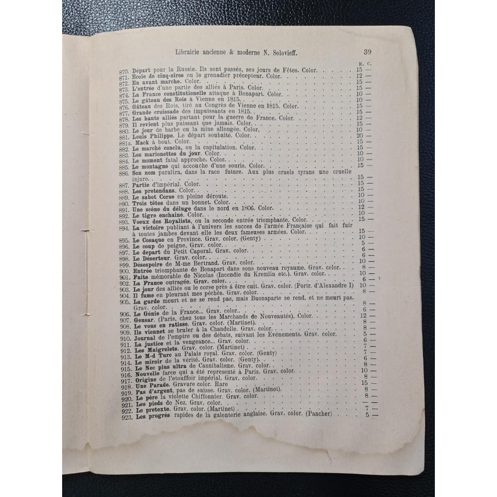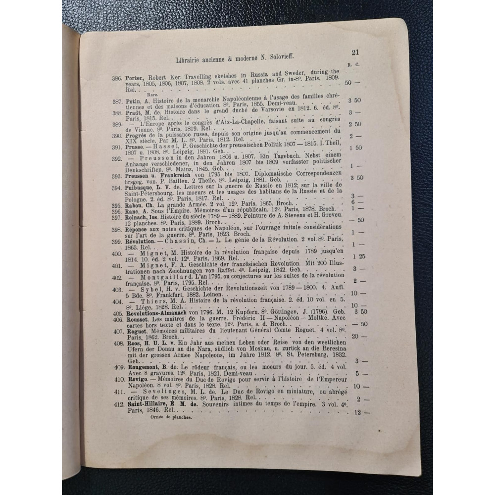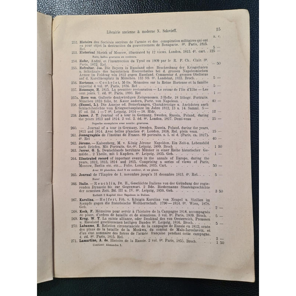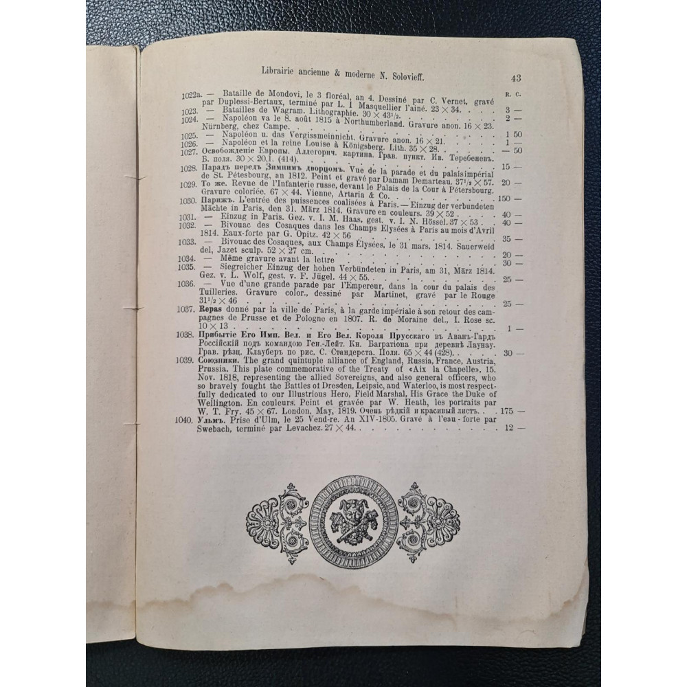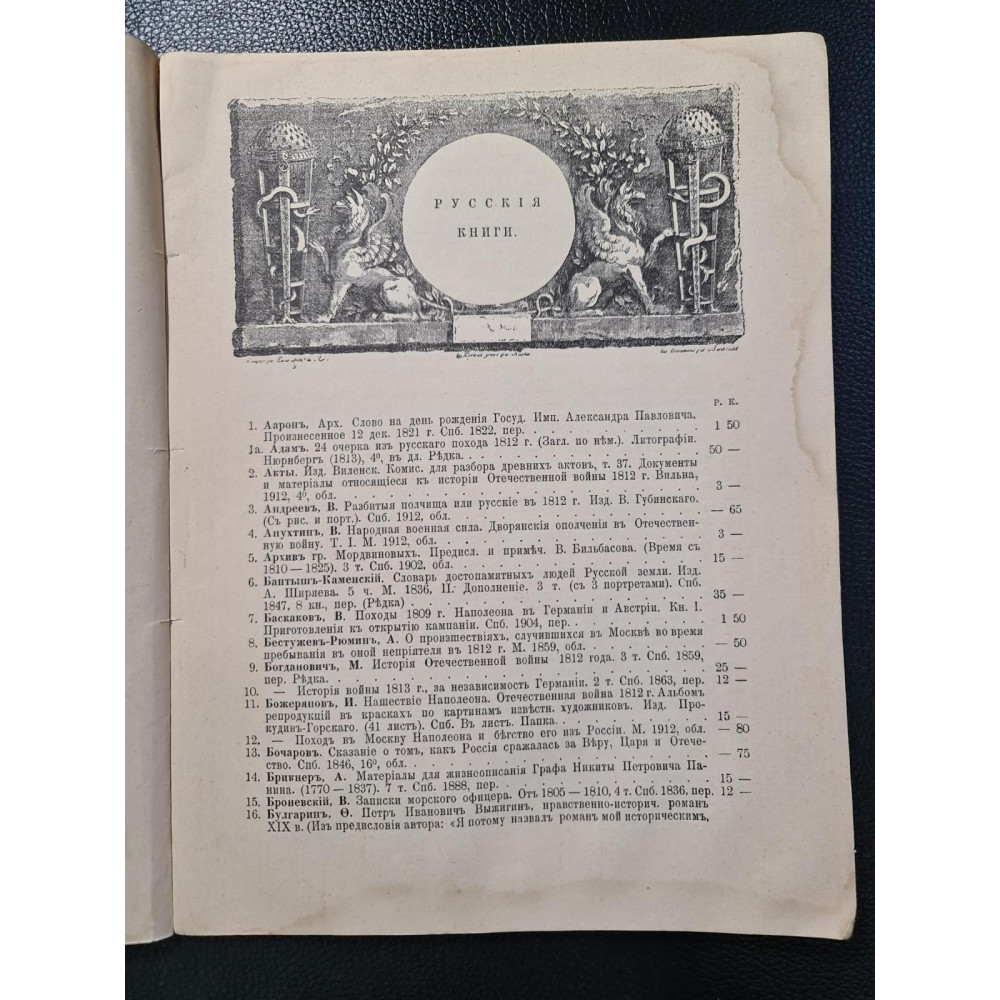 Каталог являє собою збірку матеріалів, присвячених війні 1812, Наполеону і пов'язаним з ним подіям.