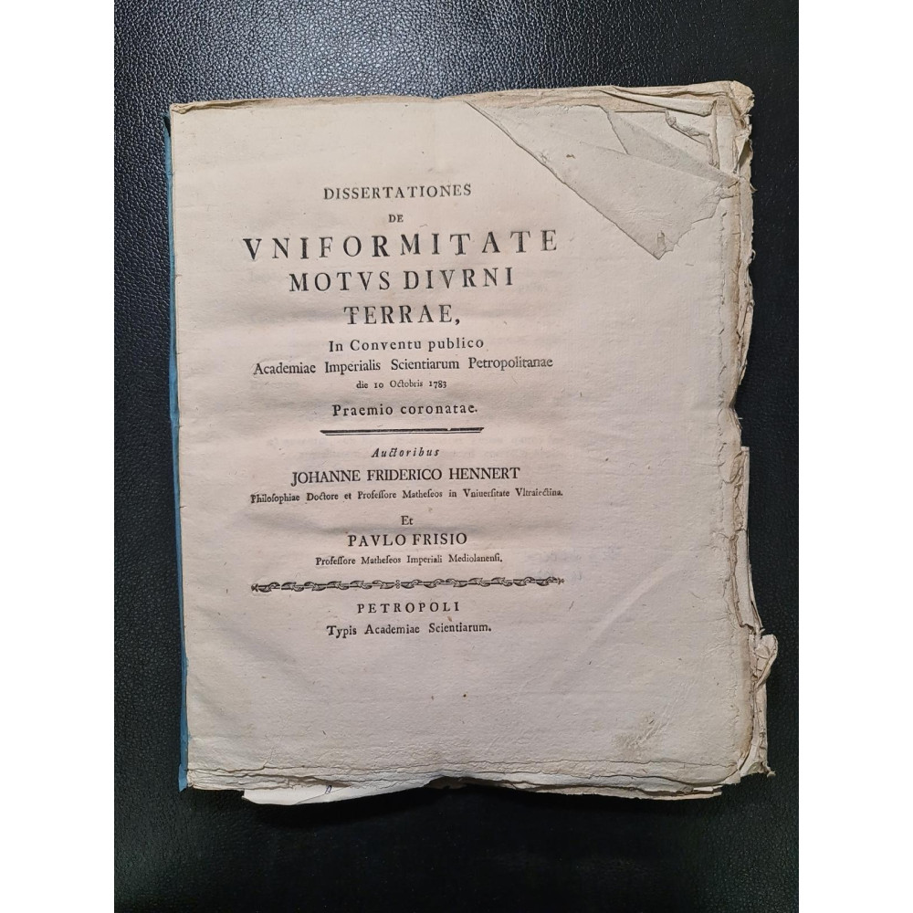Dissertationes de Uniformitate Motus Diurni Terrae, in Conventu Publico Academiae Imperialis Scientiarum Petropolitanae die 10 Octobris 1783, Praemio Coronatae.