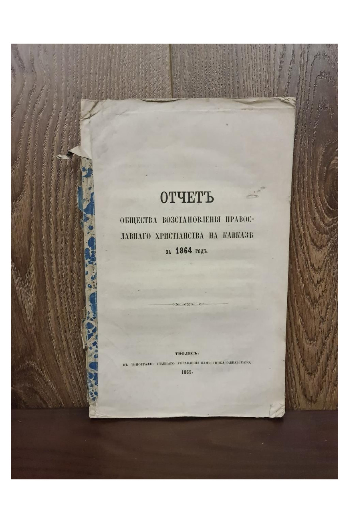 Этот отчет был издан в 1864 году и содержит детальную информацию о деятельности Общества Восстановления Православного Христианства на Кавказе. В документе приводятся сведения о миссионерской работе, строительстве храмов, образовательных инициативах, финансировании, а также взаимодействии с местными народами Кавказа.