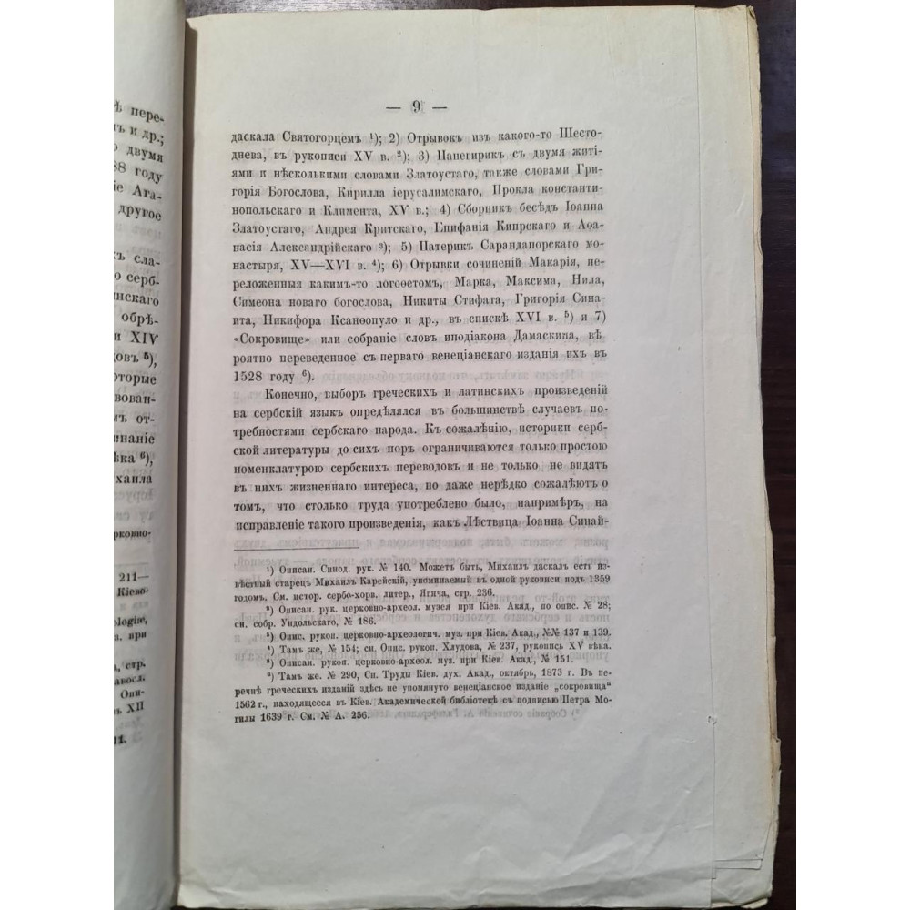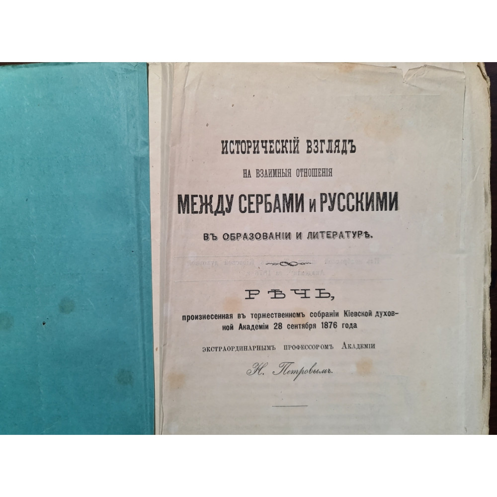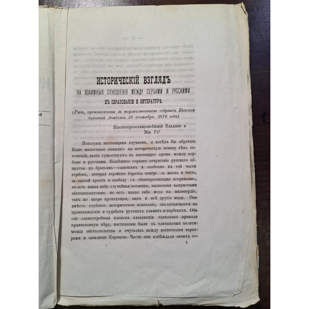 Редкое историческое издание XIX века, представляющее собой речь, произнесённую на торжественном собрании Киевской духовной академии 28 сентября 1876 года. В работе рассматриваются культурные и образовательные связи между сербами и русскими, а также их литературные взаимовлияния.
