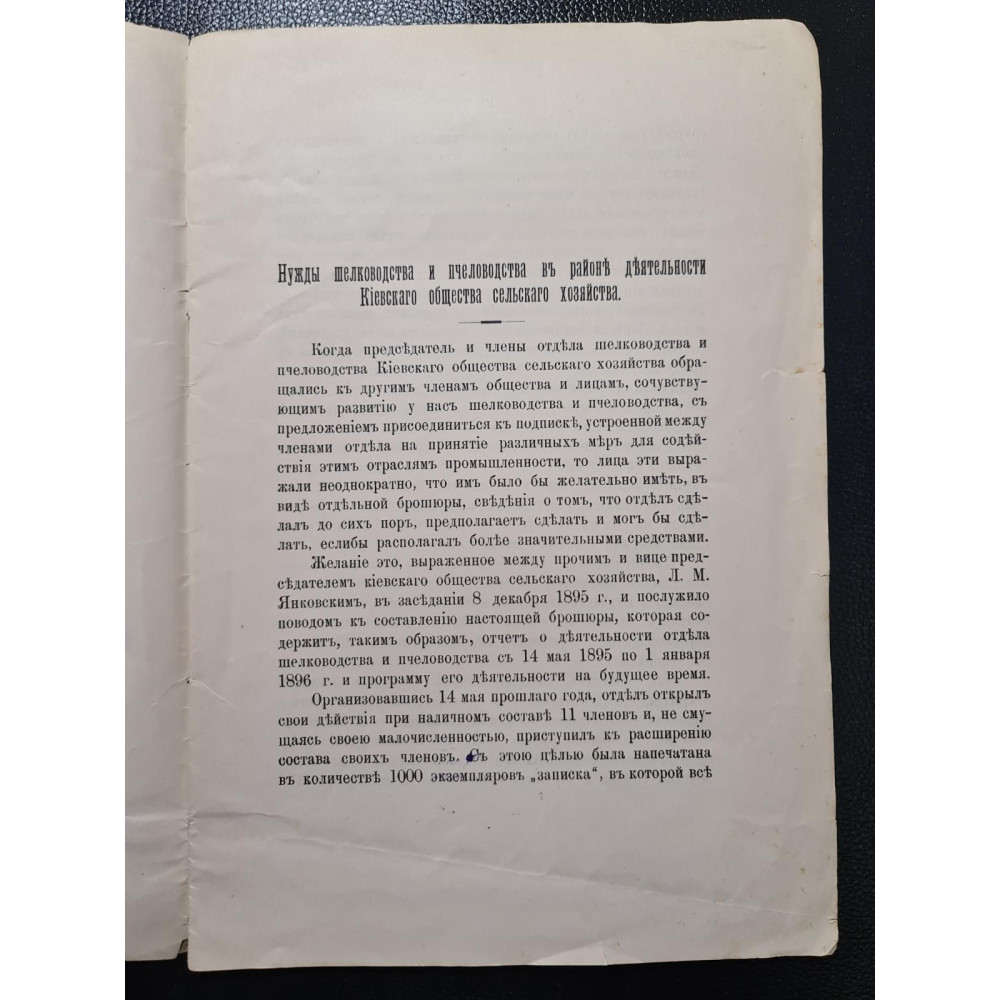 "Нужды шелководства и пчеловодства в районах деятельности Киевского общества сельского хозяйства".