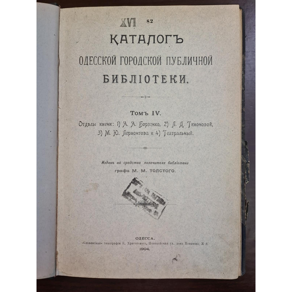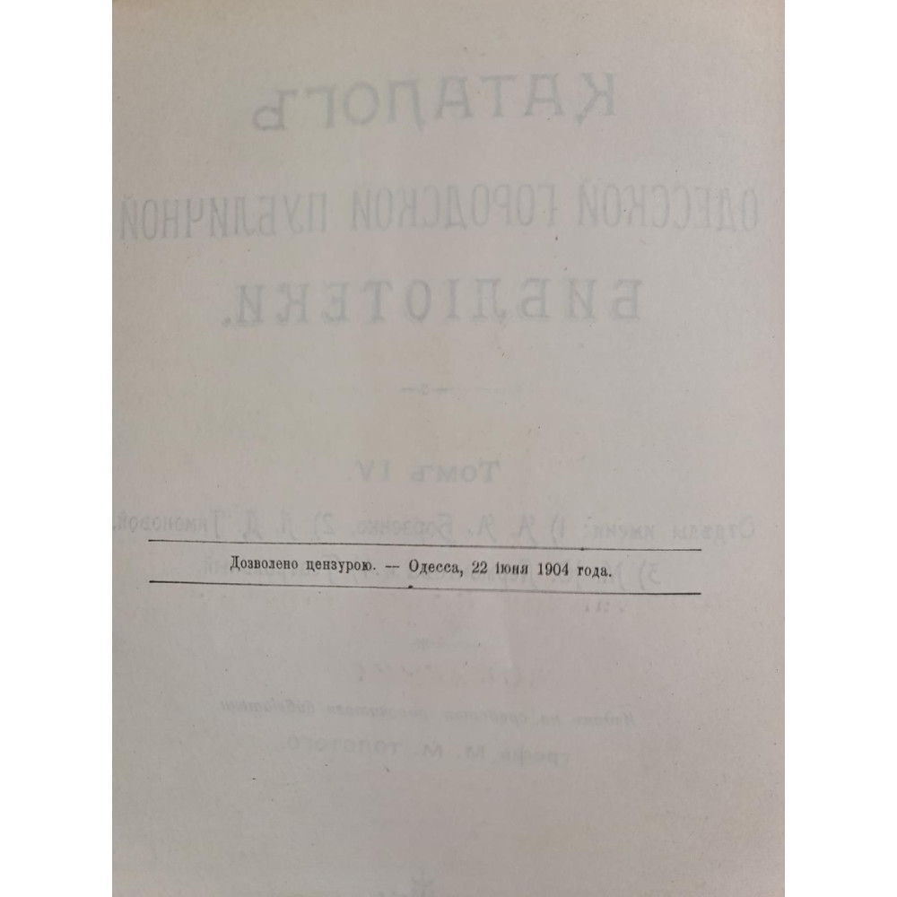 Каталог Одесской Городской Публичной Библиотеки. Том IV.