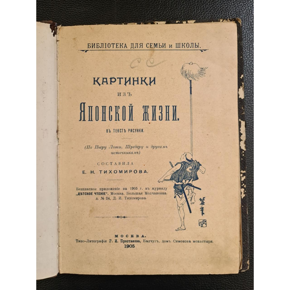 Книга «Картинки из японской жизни» была написана Еленой Николаевной Тихомировой и издана в 1905 году.