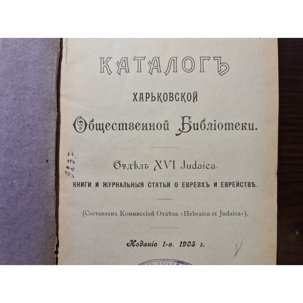 Каталог Харьковской Общественной Библиотеки. Отдел XVI Judaica (1905 г.)