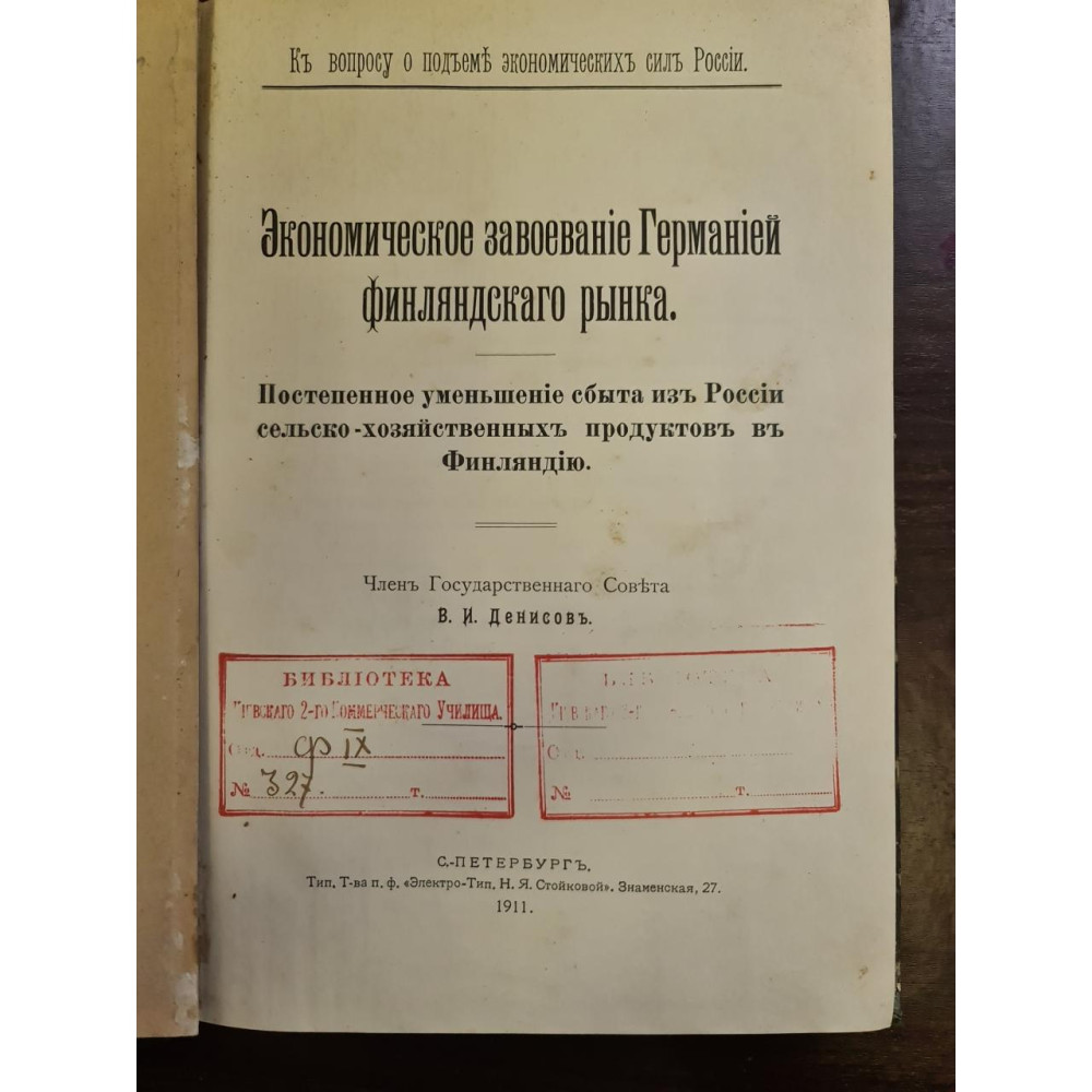 Редкое издание начала XX века, посвященное анализу экономических взаимоотношений между Россией, Германией и Финляндией.