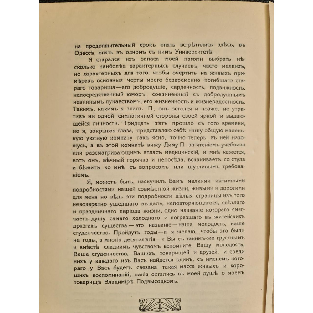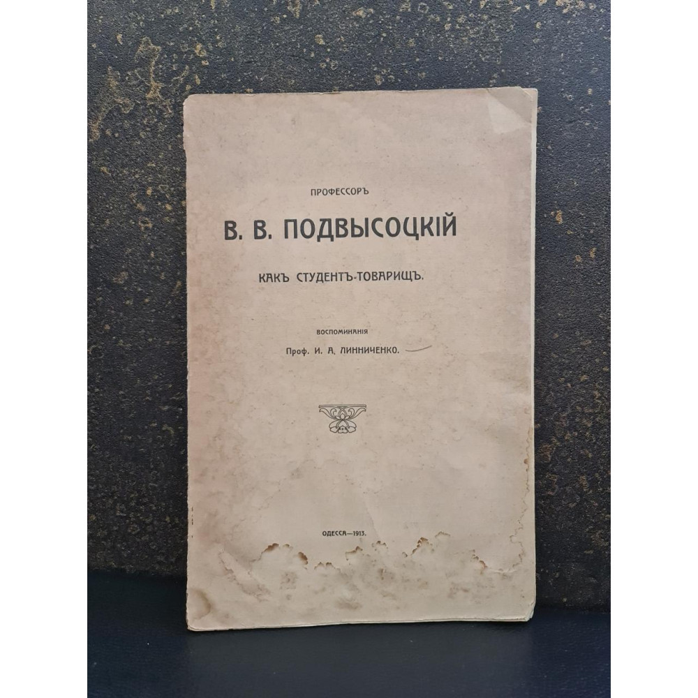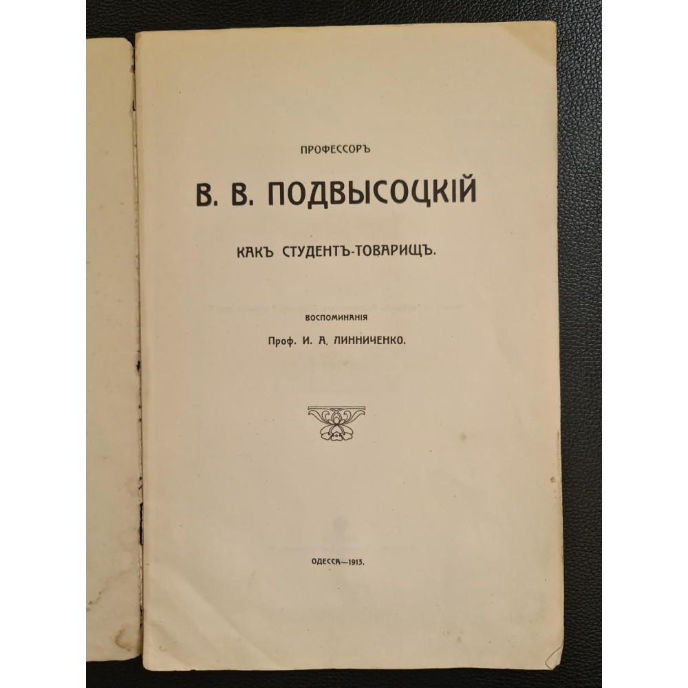 В 1913 году в Одессе была опубликована книга «Профессор В. В. Подвысоцкий как студент и товарищ. Воспоминания И. А. Линниченко». Это издание представляет собой сборник воспоминаний о Владимире Валерьяновиче Подвысоцком, выдающемся отечественном патологе и эндокринологе, скончавшемся в том же году. Книга освещает его студенческие годы и личные качества.