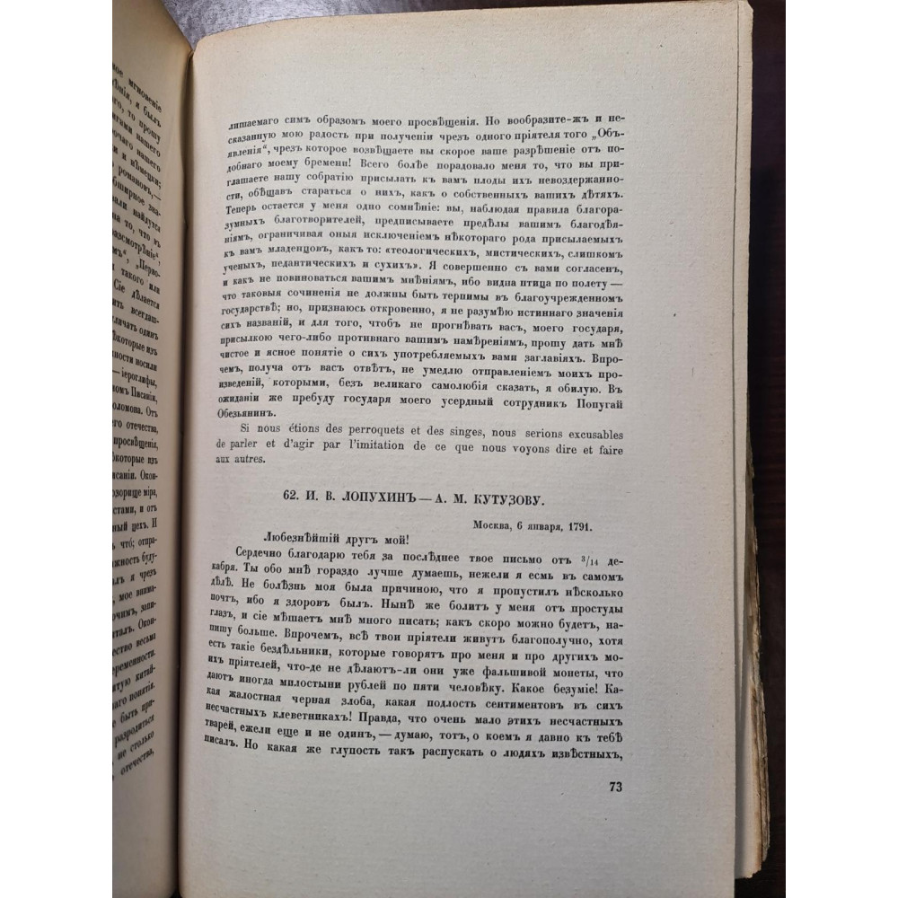 Письма мартинистов (1790–1792 гг.): Эта часть включает переписку, хранившуюся в Петроградском главном архиве Министерства иностранных дел.