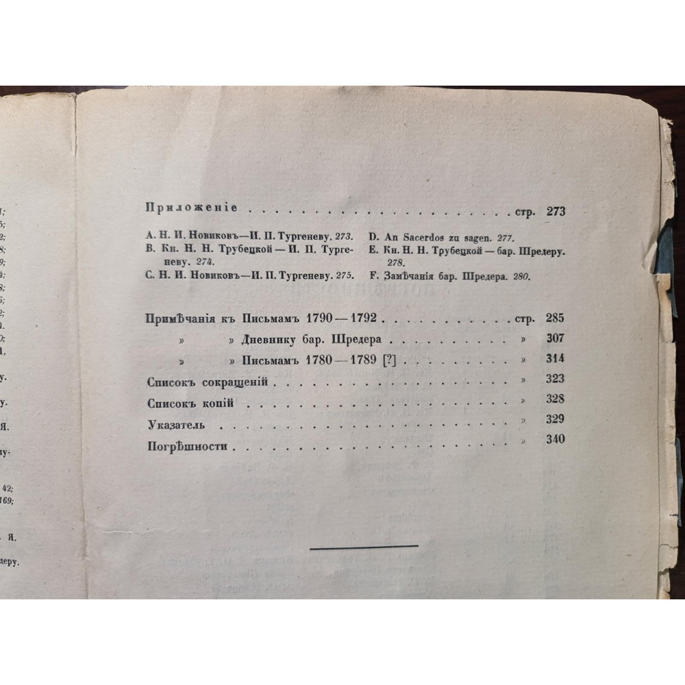 В приложении впервые опубликованы письма Н. И. Новикова и князя Н. Н. Трубецкого,