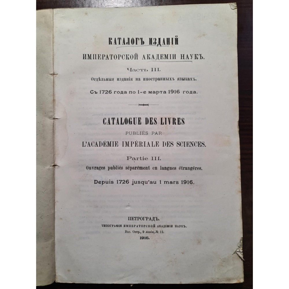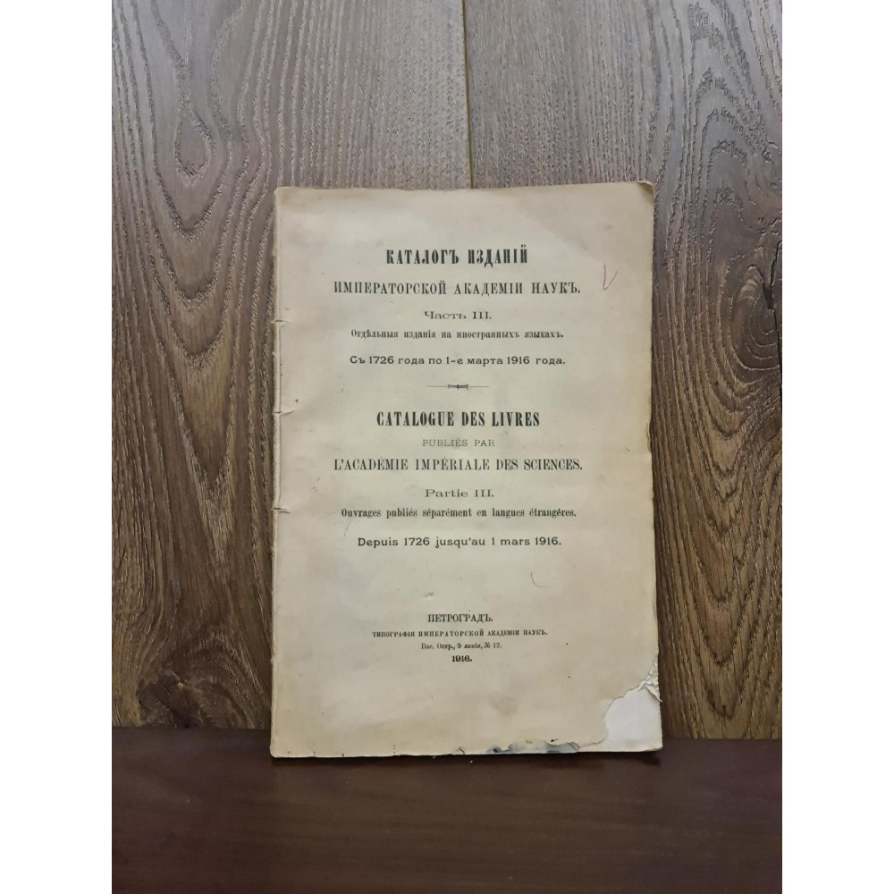 Тип: Библиографический справочник по отдельным изданиям на иностранных языках, выпущенным Академией наук с 1726 по 1 марта 1916 года.