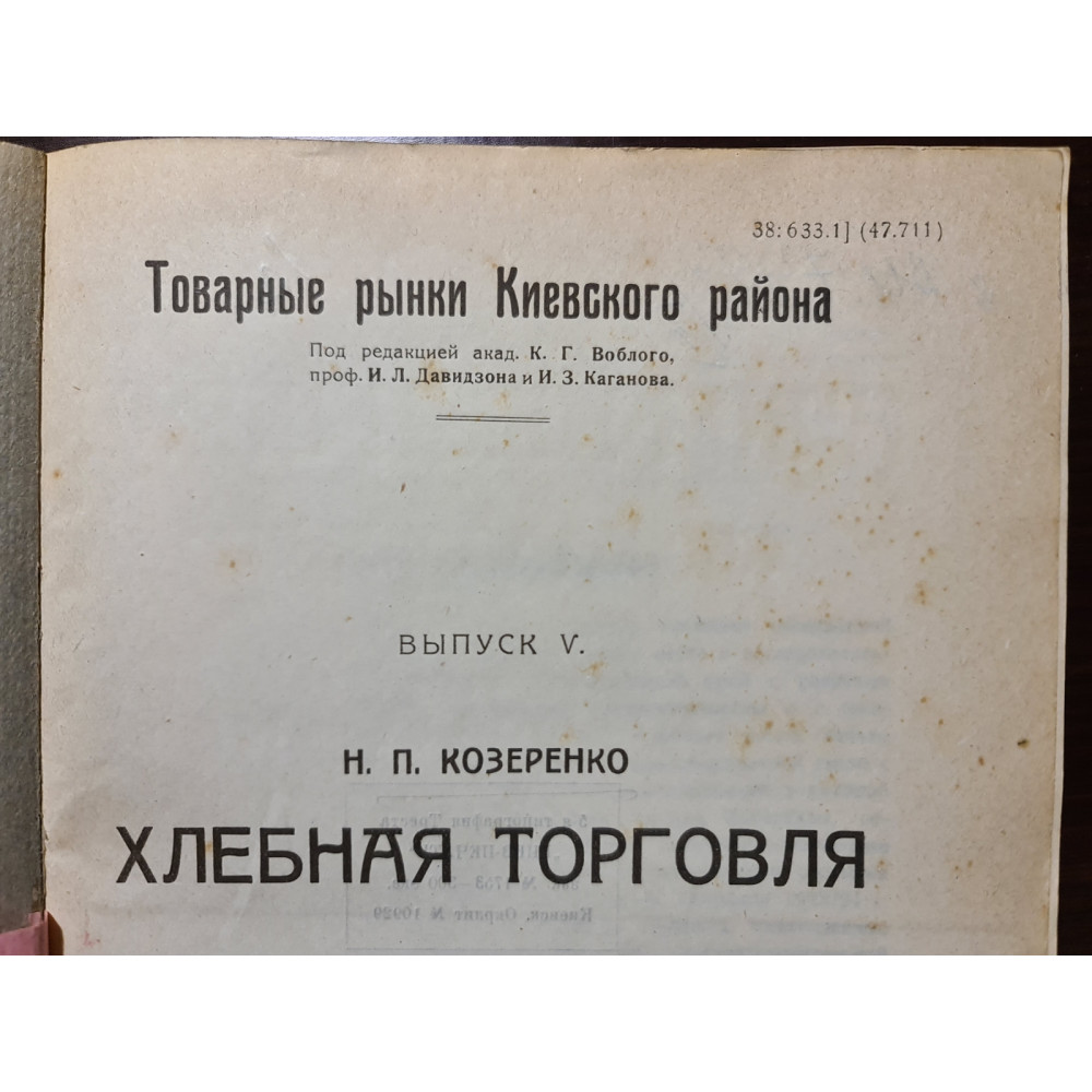 Товарные рынки Киевского района. Выпуск V. Хлебная торговля