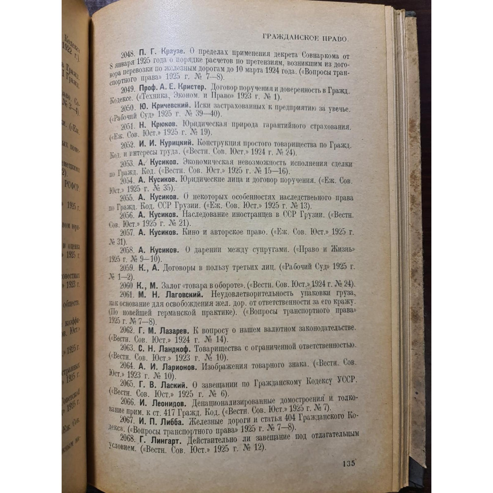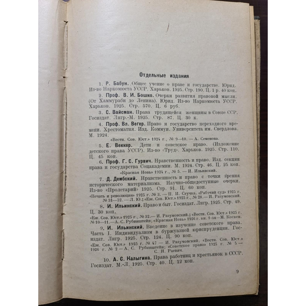юридической литературы, изданной в период 1923—1925 годов. Книга содержит перечень и