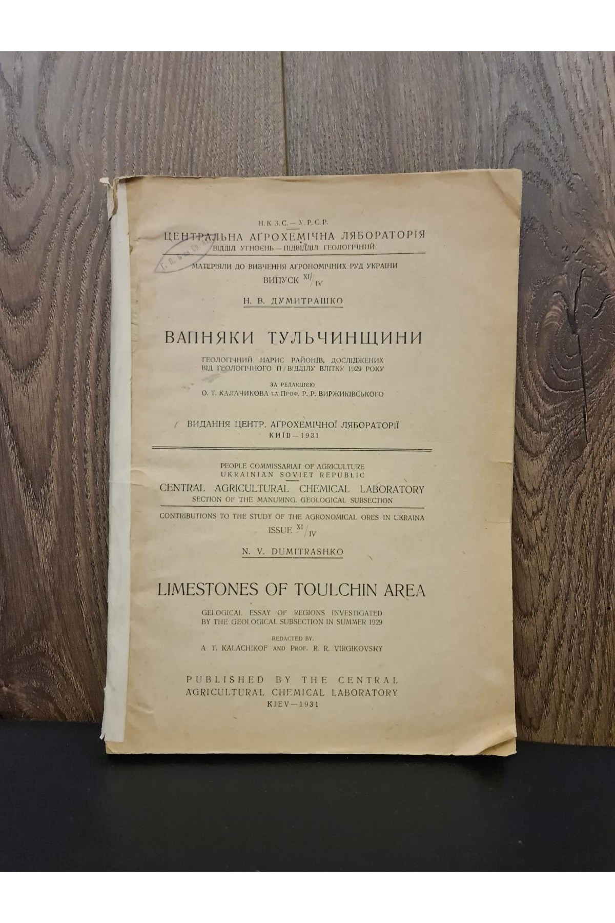 Редкая книга 1931 года, посвящённая геологическим исследованиям Тульчинского района.