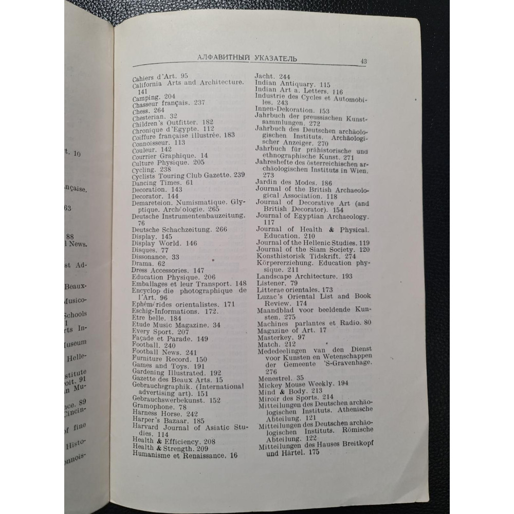 Искусство и спорт. Аннотированный каталог иностранных журналов. 1939 год.