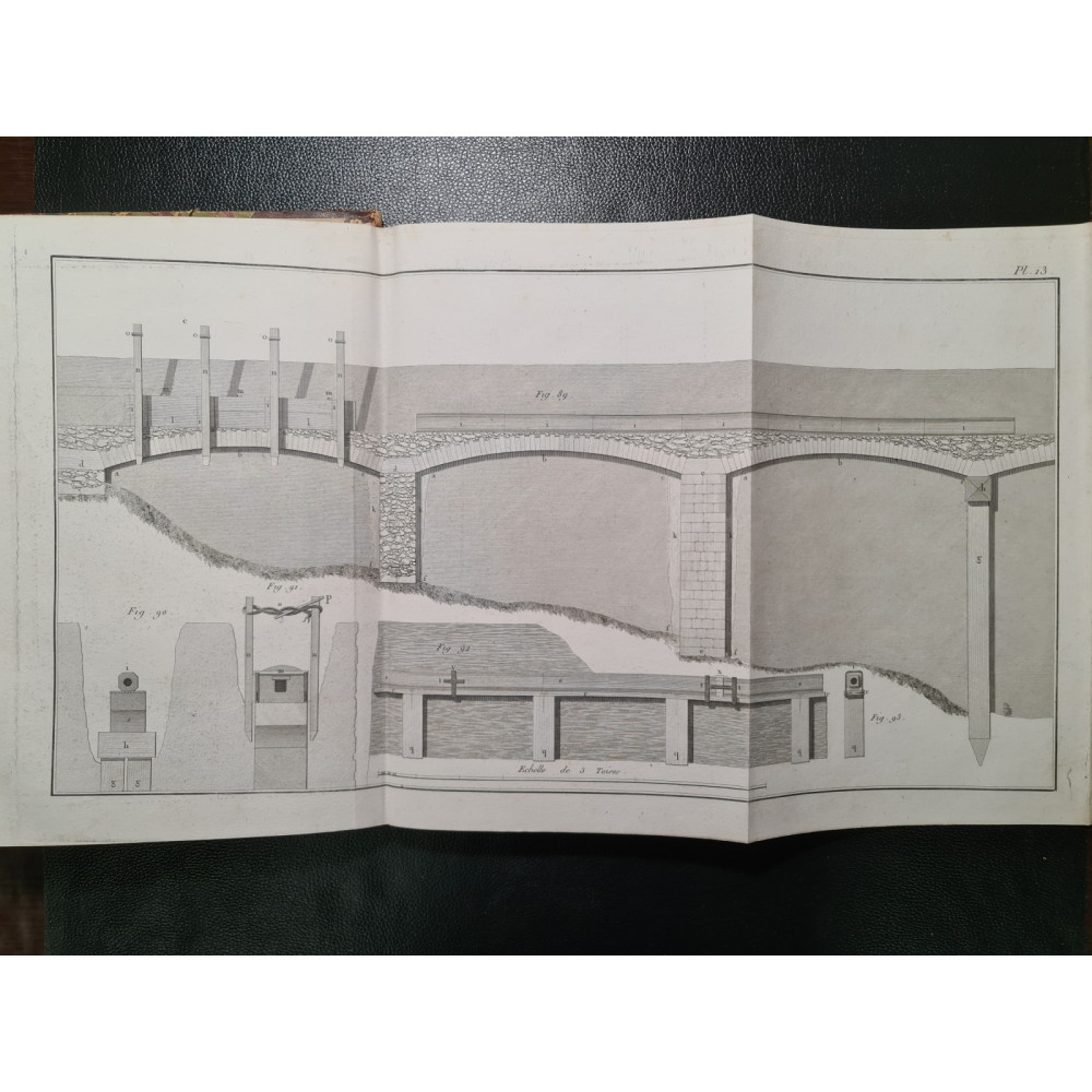 Эта редкая антикварная книга представляет собой великолепный образец старинного издания, предназначенного для архитекторов, инженеров, геодезистов или коллекционеров. Издание содержит подробные чертежи, выполненные с удивительной точностью и мастерством. Каждый чертеж иллюстрирует технику и стиль своего времени, что делает книгу бесценным источником информации для изучения истории архитектуры и инженерного дела.