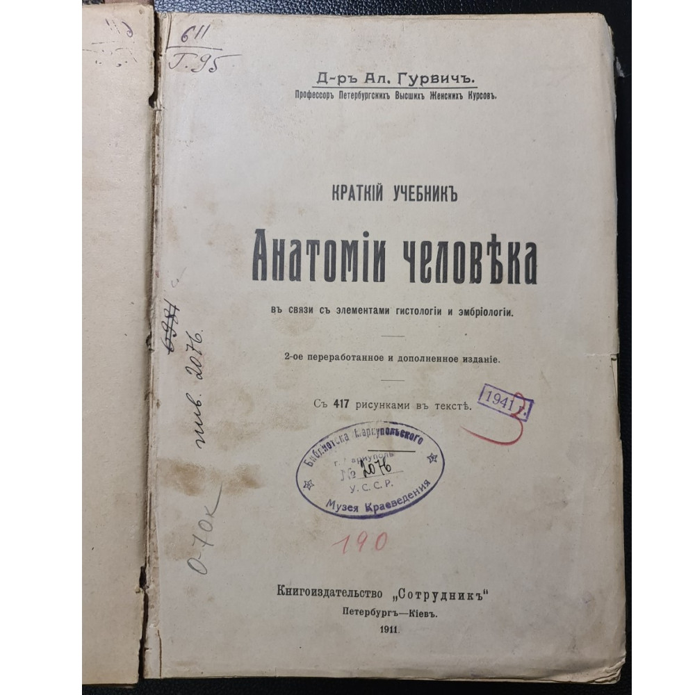 Редкое и ценное издание, представляющее собой учебник по анатомии человека с элементами гистологии и эмбриологии, авторитетного автора – профессора Петербургских Высших женских курсов.