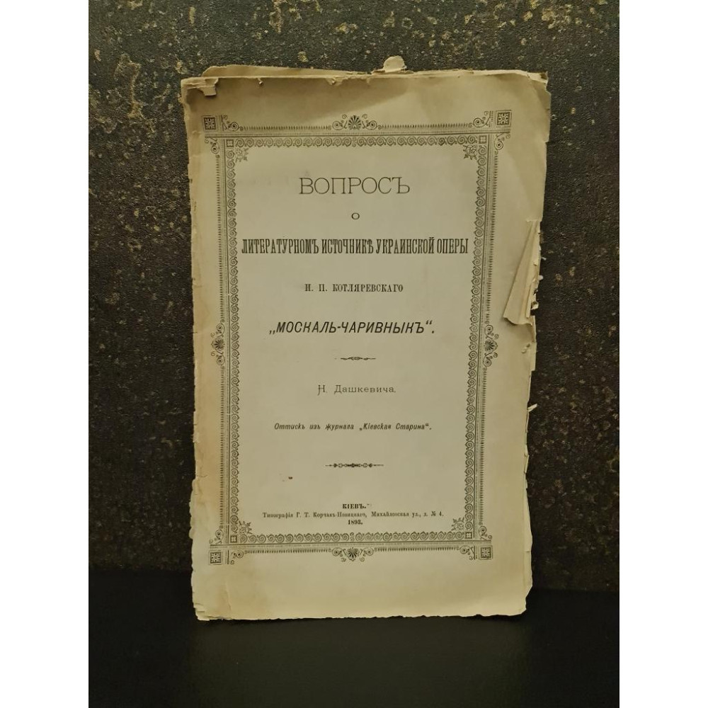 Издание "Москаль-Чаривникъ" Н. Дашкевича (1893) — это коллекционное произведение, являющееся ценным экземпляром украинской музыкальной